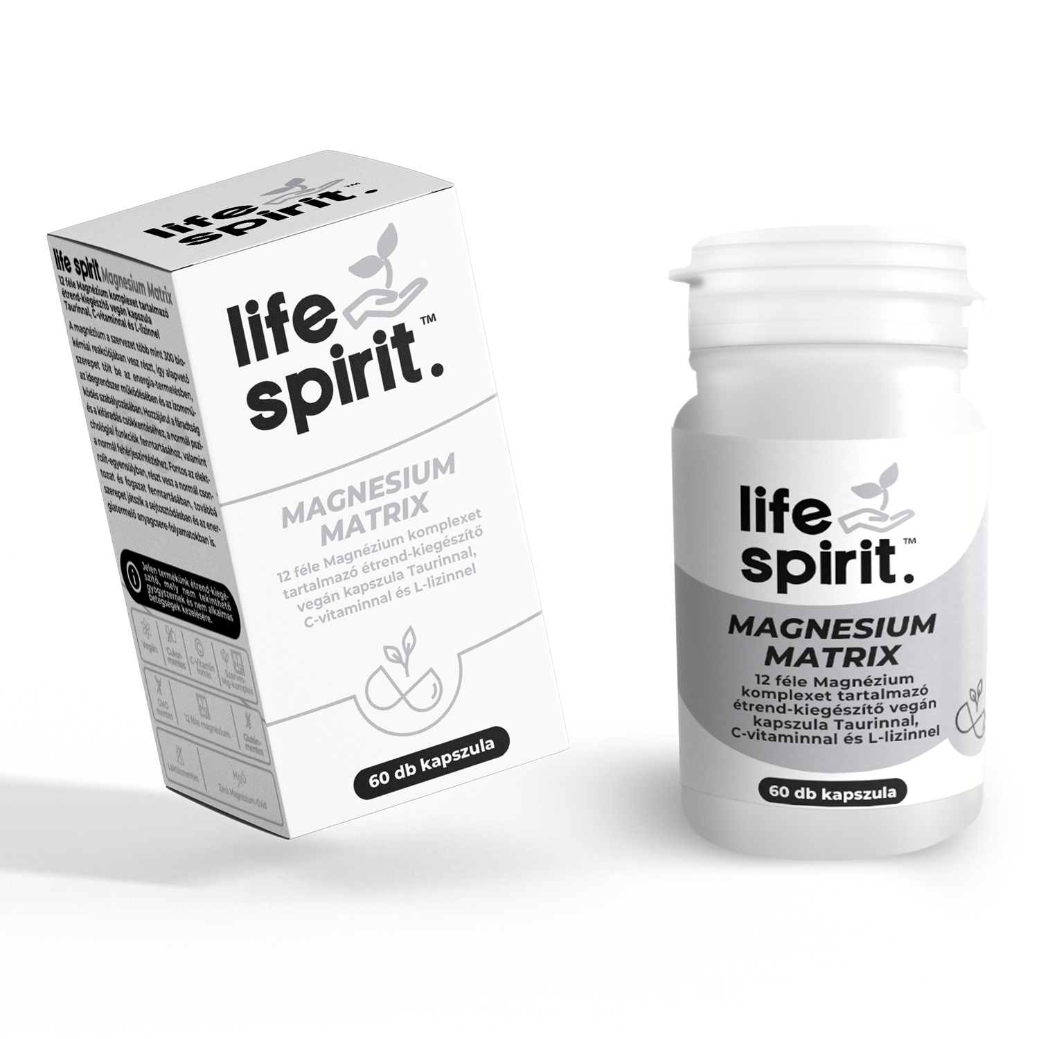 A Life Spirit Magnesium Matrix kapszulák 12 féle természetes magnéziumsók keverékét tartalmazzák (magnézium-taurát, magnézium-biszglicinát, magnézium-malát, magnézium-L-treonát, magnézium-szukcinát, magnézium-citrát, magnézium-L-aszkorbát, magnézium-piruvát, magnézium-acetil-taurát, magnézium-L-lizinát, magnézium-laktát, magnézium-L-pidolát), felnőttek fokozott magnézium szükségletének étrendi pótlására. A tégely egyhavi adagot (60 db. kapszula) tartalmaz.