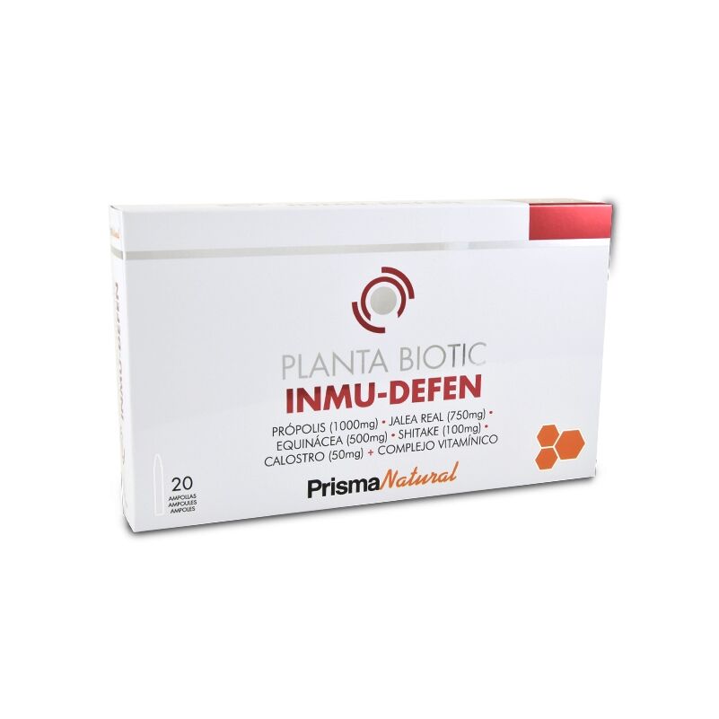 A PrismaNatural Planta Biotic Inmu-Defen-t mindazoknak ajánljuk, akik szeretnék az immunrendszerüket megerősíteni. A folyékony étrendkiegészítő 20 db ampullát tartalmaz, melyek egyenként 10 ml-esek. 1.000 mg propoliszt, 750 mg méhpempőt és 500 mg echinaceát tartalmaz ampullánként! Ezen kívül kakukkfüvet, shiitake gombát, homoki szalmagyopárt, C-vitamint, kolosztrumot, áfonya koncentrátumot, aminosavakat (mint pl. L-luceint, L-lizint, L-treonint, L-valint), vitaminokat (E-vitamin, B5-vitamin, B2-vitamin, B1-vitamin, folsav, B12-vitamin) és rezet tartalmaz. A folyékony formula kiváló felszívódást biztosít.
